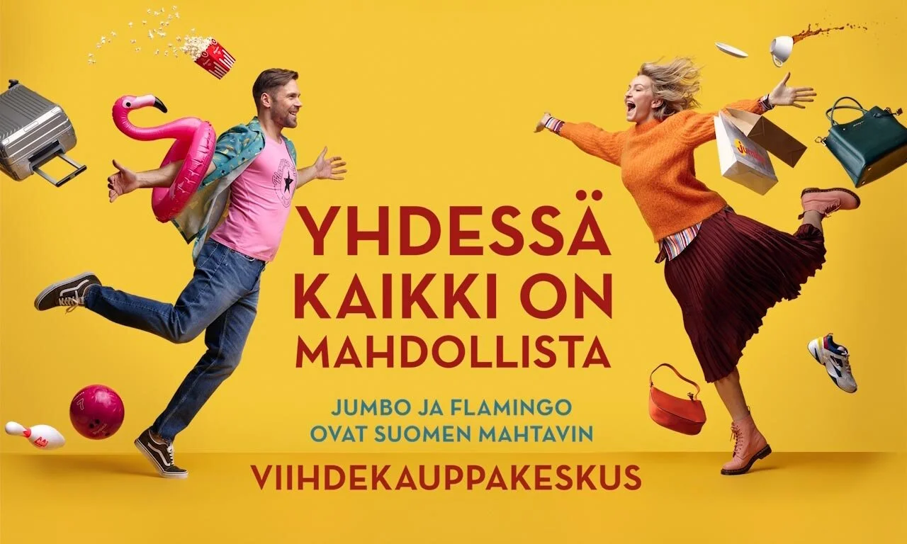 Convoy suunnitteli näyttävän ulkomainoskampanjan Suomen mahtavimmalle viihdekauppakeskus Jumbolle ja Flamingolle.